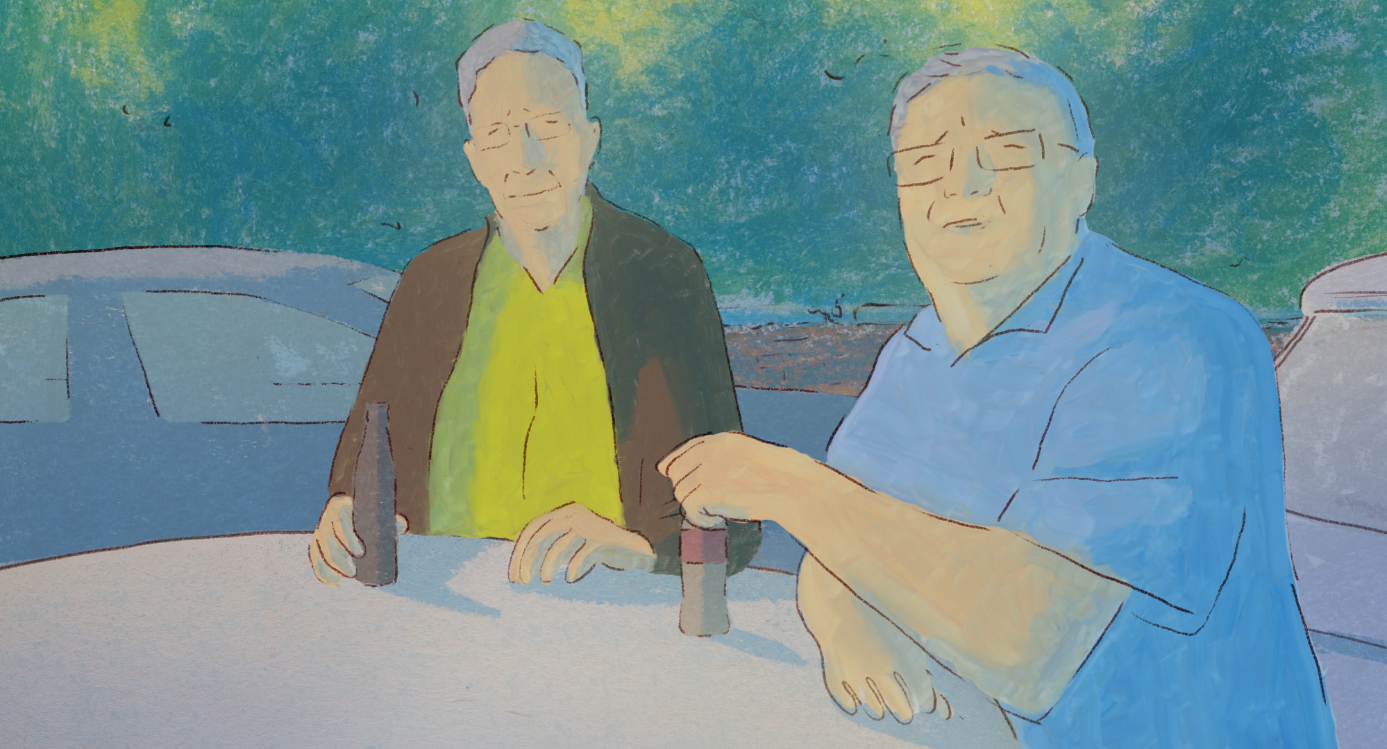 Plongés dans la chaude obscurité d’une nuit d’été, les lampadaires d’Ottignies illuminent des voitures flottant dans les airs. Le lendemain matin, un crop circle en forme de sablier apparaît sur la Place du Centre, reconvertie aujourd’hui en parking. Deux équipes de balle pelote, sport local chassé par l’automobile il y a plus de 30 ans, s’y affrontent, provoquant l’arrêt total de la circulation.